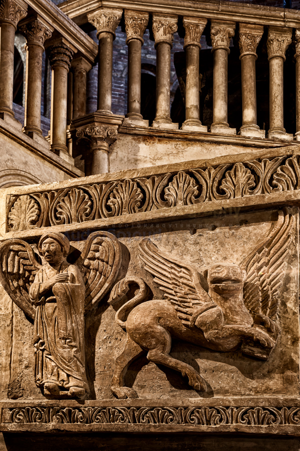 PT2012_08_Bologna-27 Description: Church complex of Santo Stefano: central pulpit of Romanesque San Sepolcro with carved stone figures of angel and griffin on side, columns above, Bologna, Italy Keywords: Bologna, Church, Emilia-Romagna, Format, Gothic, Italia, Italian, Italy, San Sepolcro, San Stefano, Seven Churches, ancient, angel, architecture, brick, carved, centro storico, circular, city, close up, closeup, columns, complex, country, detail, dodecagonal, eagle, europe, griffin, historic centre, medieval, old, portrait mode, pulpit, sides, stone, twelve, vertical, view Dimensions: 3744 x 5616 Camera: Canon EOS 5D Mark II Exposure: 5,0 sec at f / 7,1 Focal Length: 48 mm ISO: ISO 200 Copyright: © PHOTOempt 2012