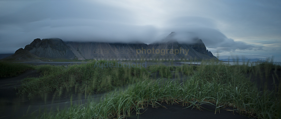 SSP_ICE2014-084 Description: Black sand dunes with green grasses and reeds at Stokksnes, basalt cliff formations, with low lying evening swirling cloud formation, Austurland region, Iceland Keywords: Austurland Region, Format, Iceland, South, Stokksnes, beach, billowing, clouds, cloudy, cumulus, dramatic, dunes, dusk, environment, environs, evening, fluffy, grass, grasses, grassland, green, horizontal, landscape, landscape mode, nature, outdoors, overcast, panorama, plains, plants, puffy, sand, sand dune, scenery, scenic, sea, sky, skyscape, sundown, sunset, time, twilight, view, vista, water, weather Dimensions: 8051 x 3413 Camera: Canon EOS-1D X Exposure: 30,0 sec at f / 11 Focal Length: 24 mm ISO: ISO 500 Copyright: © Sarah Slade Photography 2014