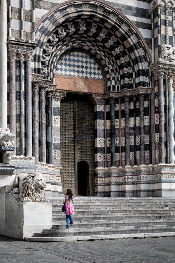 PT2012_08_Milan-Genoa-65 Description: Genoa Centro Storico: Duomo of San Lorenzo, facade detail with ornate marble columned entranceway , carved marble lion frontal view, with woman standing, Genova, Italy Keywords: Cathedral, Christian, Church, Duomo, Format, Genoa, Genova, Italia, Italian, Italy, Piazza San Lorenzo, Romanesque, San Lorenzo, arch, architecture, black, building, buildings, carving, city, close up, closeup, column, construction, country, decorated, detail, door, doorway, entrance, europe, exterior, facade, female, figures, front, holy, lady, lion, lone, marble, medieval, ornate, pattern, person, piazza, portrait mode, religion, religious, sacred, sculpture, single, stone, stonework, structure, texture, trellis, vertical, view, white, woman, worship Dimensions: 3744 x 5616 Camera: Canon EOS 5D Mark II Exposure: 1/60 sec at f / 13 Focal Length: 58 mm ISO: ISO 100 Copyright: © PHOTOempt 2012