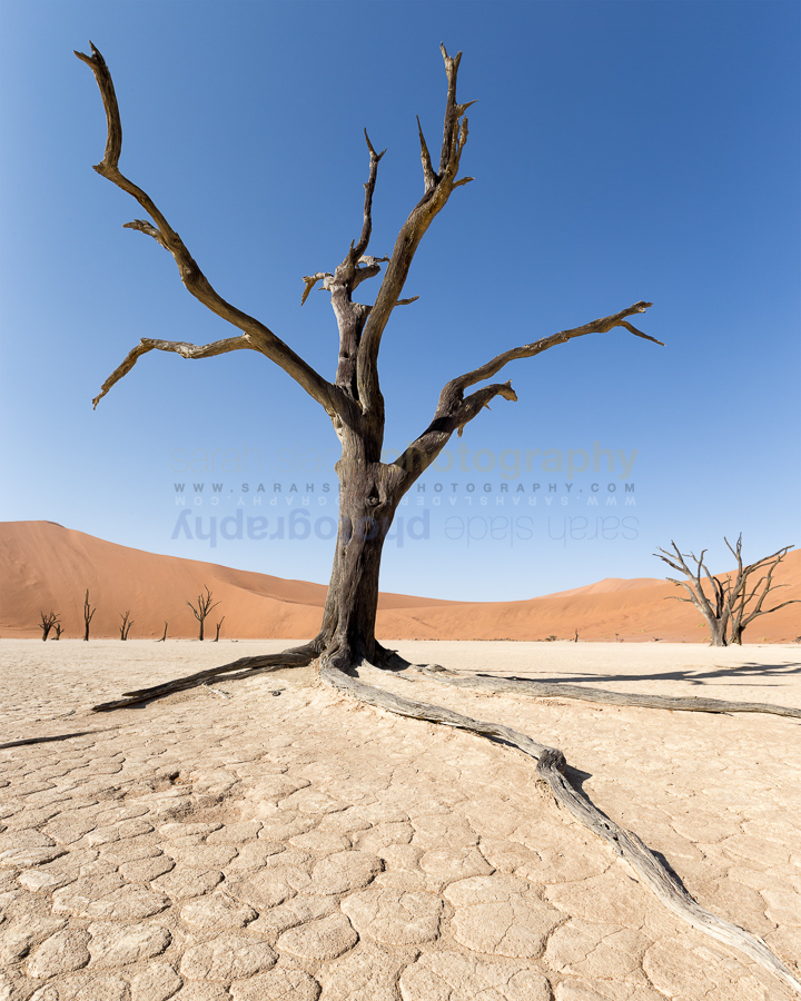 SSP_NAB-SA2014-095 Description: Camelthorn tree skeleton standing stark with spreading roots on the white claypan of Deadvlei against the deep blue sky in early morning, curving red sand dunes beyond, Sossussvlei, Namib desert, Namibia, South West Africa Keywords: Africa, African, Deadvlei, Format, Namib, Namib-Naukluft, Namibia, Namibian, National Park, Sossusvlei, South West, acacia, bare, blue, camelthorn, color, colored, colour, coloured, country, dead, desert, dunes, environment, environs, iconic, landmark, landscape, nature, outdoors, plants, portrait mode, red, sand, sand dunes, scenery, scenic, sky, sunlight, sunny, sunshine, tree, trees, vertical, view, wood Dimensions: 4144 x 5180 Camera: Canon EOS-1D X Exposure: 1/100 sec at f / 11 Focal Length: 16 mm ISO: ISO 100 Copyright: sarahsladephotography