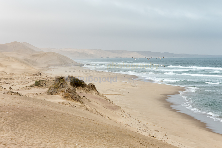 SSP_NAB-SA2014-117 Description: Sand dunes slope down to curving shore line of Atlantic Ocean with incoming rolling waves, coastline curving into misty distance with flock of gulls flying overhead, Sandwich Harbour, Namib desert, Namibia, South West Africa Keywords: Africa, African, Format, Namib, Namibia, Namibian, Sandwich Harbour, South West, beach, blue, cloudy, country, desert, dunes, environment, environs, horizontal, landscape, landscape mode, nature, outdoors, overcast, panorama, sand, sand dune, scenery, scenic, sea, sky, view, vista, water, weather Dimensions: 4953 x 3302 Camera: Canon EOS-1D X Exposure: 1/640 sec at f / 10 Focal Length: 125 mm ISO: ISO 320 Copyright: sarahsladephotography