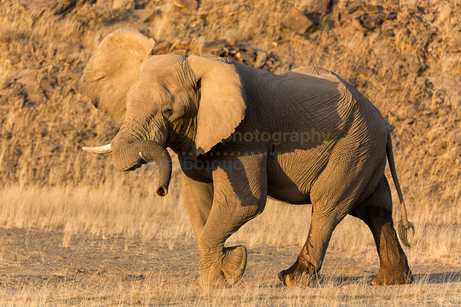 SSP_NAB-SA2014-227 Description: Large adult male elephant walking, ears flapping, and resting his trunk over his tusks, with background of rocks of river bed in golden afternoon sunlight, close up side view, Huanib river bed, Damaraland, Namibia, South West Africa Keywords: Africa, African, Conservancy, Damaraland, Format, Huanib River, Kunene, Namibia, Namibian, South West, action, activity, adult, angle, animal, animals, close up, closeup, country, desert, dry river, environment, horizontal, landscape, landscape mode, male, mature, motion, nature, one, riverbed, side, single, view, walking Dimensions: 5760 x 3840 Camera: Canon EOS 5D Mark III Exposure: 1/640 sec at f / 5,0 Focal Length: 260 mm ISO: ISO 400 Copyright: sarahsladephotography