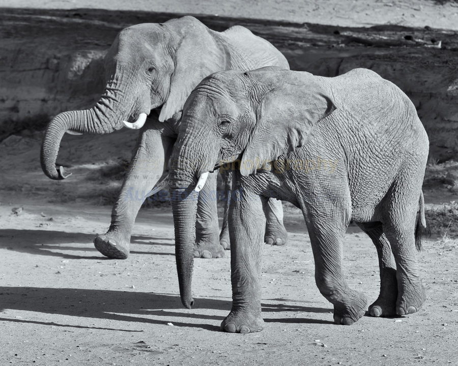 SSP_NAB-SA2014-275 Description: Two young adult elephants march solemnly across the Huanib river bed in the hot midday sun, frontal oblique view close up, monochrome image, Huanib river, Damaraland, Namibia, South West Africa Keywords: Africa, African, Conservancy, Damaraland, Format, Huanib River, Kunene, Namibia, Namibian, South West, action, activity, adult, animal, animals, black and white, brown, country, desert, dry river, elephant, environment, environs, family, gray, grey, group, herd, horizontal, immature, landscape, landscape mode, mammal, mammals, many, mature, monochrome, motion, nature, outdoors, pachyderm, riverbed, savanna, savannah, scenery, scenic, several, view, walking, wild, wildlife, young Dimensions: 5180 x 4144 Camera: Canon EOS-1D X Exposure: 1/800 sec at f / 6,3 Focal Length: 155 mm ISO: ISO 400 Copyright: sarahsladephotography