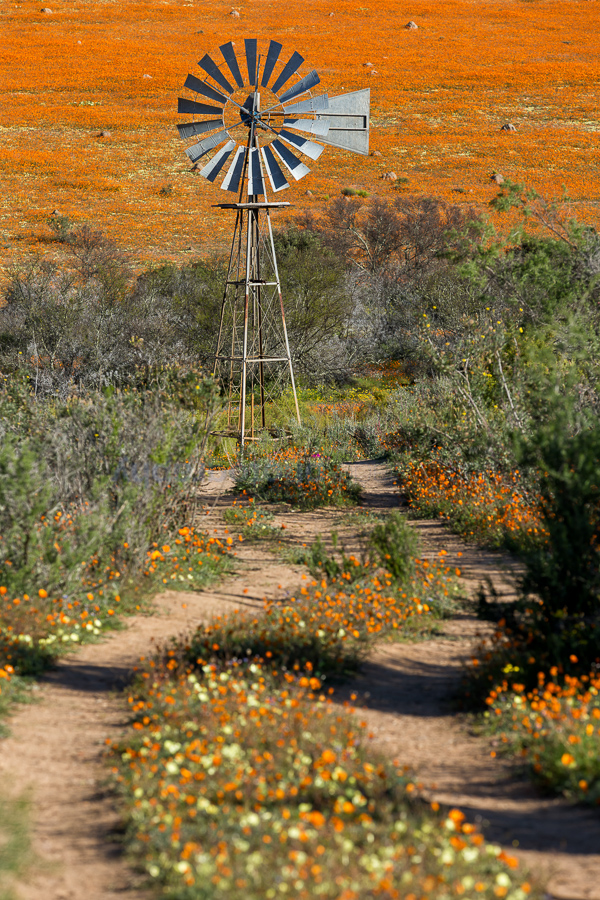 SSP_NAB-SA2014-352 Description: Carpets of orange daisies in the distance frame a traditional windmill with a pathway leading towards it, sunny spring afternoon, Namaqua National Park, Northern Cape, South Africa Keywords: Africa, Britain, Dimophotheca sinuata, Format, Kamieskroon, Monan, Namakwaland, Namaqua National Park, Namaqualand, Northern Cape, Orange Daisy, Scotland, South Africa, St, Wind Turbine, alternative energy, country, energy, environment, environs, flower, flowers, landscape, nature, outdoors, plant, plants, portrait mode, scenery, scenic, vertical, view, wild, wild flowers, wind farm, windmill Dimensions: 3456 x 5184 Camera: Canon EOS-1D X Exposure: 1/160 sec at f / 8,0 Focal Length: 200 mm ISO: ISO 100 Copyright: sarahsladephotography