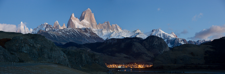 IMG_8920-Edit-2 Description: Panorama view of sunrise over the snow covered Andes mountain range of Mount Fitzroy and Cerro Torre, El Chalten, Argentina, Patagonia, with clear blue sky, and town lights still illuminated at dawn Keywords: Andes, Argentina, Beautiful, Cerro Chalten, Cerro Fitzroy, Cerro Torre, El Chalten, Fall, Lago Argentino, Lake Argentino, Los Glaciares, Mount Fitzroy, Patagonia, South America, South American, autumn, autumnal, beauty, blue, clouds, color, colored, colour, coloured, country, dawn, daybreak, daytime, dramatic, early, environment, environs, ice, illuminated, landscape, morning, mountain, mountains, nature, outdoors, panorama, peak, range, scenery, scenic, season, seasons, sky, snow, sunrise, time, town, view, vista Dimensions: 11041 x 3632 Camera: Canon EOS 5D Mark II Exposure: 2,0 sec at f / 5,6 Focal Length: 95 mm ISO: ISO 400 Copyright: