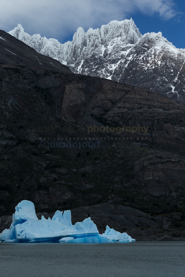 SSP2013_11_ANT-394 Description: View across Lago Grey : intense blue iceberg with slope and glacier of Paine Grande visible beyond, sunny springtime afternoon, blue sky with delicate clouds, Torres del Paine National Park, Patagonia, Chile Keywords: Beautiful, Chile, Format, Lago Grey, Paine Grande, Patagonia, South America, South American, Torres del Paine National Park, beauty, blue, calm, cliff, close up, closeup, clouds, country, detail, dramatic, environment, environs, frozen, glacier, ice, lago, lake, landscape, mountain, mountains, nature, outdoors, peak, portrait mode, rock, rocks, rocky, scenery, scenic, sky, slope, slopes, snow, stone, sunlight, sunny, sunshine, tranquil, vertical, view, water Dimensions: 3456 x 5184 Camera: Canon EOS-1D X Exposure: 1/2500 sec at f / 7,1 Focal Length: 70 mm ISO: ISO 400 Copyright: sarahsladephotography