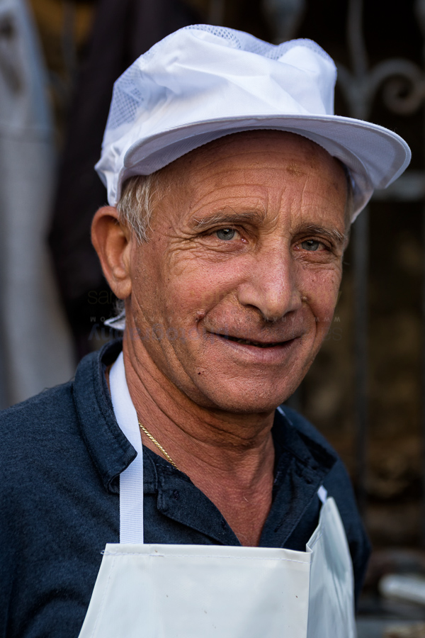 SSP2013_03_IT-13 Description: Catania, Sicily - September 13 2012: Close up portrait of the face and upper chest of a Fish market vendor dressed in white plastic apron and white cap, oblique view, Fish Market, Catania, Italy Keywords: Catania, Format, Italia, Italian, Italy, Sicilia, Sicily, South, apron, city, close up, closeup, country, detail, europe, famous, landmark, lone, male, man, one, overalls, person, plastic, portrait, portrait mode, seller, selling, single, stall, vendor, vertical, view, white Dimensions: 3456 x 5184 Camera: Canon EOS-1D X Exposure: 1/500 sec at f / 4,5 Focal Length: 70 mm ISO: ISO 800 Copyright: © PHOTOempt 2012