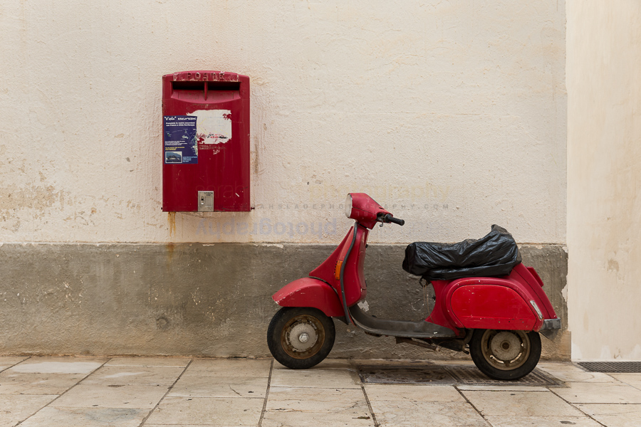 SSP2013_09_SIC-200 Description: Street detail on Island of Levanzo: red post box on white stucco crumbling wall, red Vespa motorbike parked underneath on square tiled roadway, frontal view, Levanzo, Sicily, Italy Keywords: Format, Italia, Italian, Italy, Levanzo, Sicilia, Sicily, South, Transport, age, angle, architecture, bike, building, buildings, country, europe, historic, historical, horizontal, landscape mode, moped, motorbike, motorbikes, motorcycle, parked, scooter, side, street, structure, traditional, transportation, travel, vehicle, view, wheels Dimensions: 4990 x 3327 Camera: Canon EOS-1D X Exposure: 1/125 sec at f / 5,6 Focal Length: 39 mm ISO: ISO 320 Copyright: sarahsladephotography.com