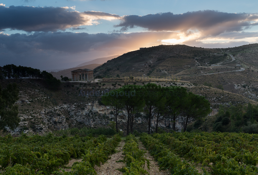 SSP2013_09_SIC-235 Description: Frontal oblique view of Temple of Segesta, fifth century B.C Greek Temple, Doric columns, perched on stony outcrop, with rows of grape vines in foreground, blue and pink sunrise sky with god beams as sun appears over hill, Segesta, Sicily, Italy Keywords: Beautiful, Doric, Format, Grecian, Italia, Italian, Italy, Magna Graecia, Segesta, Sicilia, Sicily, South, Temple, age, agriculture, ancient, architecture, beauty, building, buildings, colourful, columns, construction, country, crepuscular, dawn, daybreak, daytime, early, environment, environs, europe, farm, farming, farmland, god beams, grapes, greek, growing, hill, hills, historic, holy, horizontal, landmark, landscape, landscape mode, morning, nature, old, outdoors, panorama, pink, rays, religion, ruin, ruins, scenery, scenic, shrine, sky, skyscape, structure, style, sun, sunbeams, sunlight, sunrise, time, view, vine, vines, vineyard, viniculture, vista, wine, worship Dimensions: 5063 x 3426 Camera: Canon EOS-1D X Exposure: 1/5 sec at f / 16 Focal Length: 41 mm ISO: ISO 100 Copyright: sarahsladephotography.com