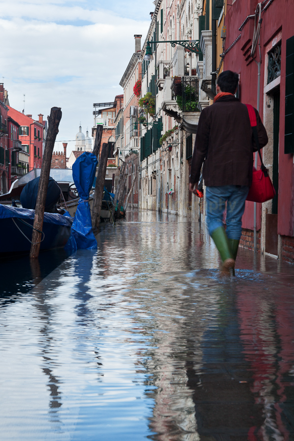 PT2010_10_VEN-57 Description: Aqua Alta: back view of man wearing green wellington boots wading through water along canal, boats moored alongside canal with reflections of buildings in water, and bell tower in distance, sunny autumn morning in Venice, Northern Italy Keywords: Baroque, Christian, Church, Construction materials, Fall, Gondola, Italia, Italian, Italy, Veneto, Venezia, Venice, acqua alta, action, activity, age, arch, arched, arches, architecture, autumn, autumnal, balustrade, bell, bell tower, blue, blur, boat, brick, bricks, building, buildings, campanile, carved, city, color, colored, colour, coloured, construction, country, daytime, era, europe, exterior, facade, flooding, green, holy, moored, morning, motion, motion blur, motorboat, painted, palace, palazzo, pattern, paved, pavement, pedestrian, pink, plaster, posts, puddle, red, reflection, religion, religious, sacred, scrollwork, season, seasons, sky, stone, street, structure, stucco, style, sunlight, sunny, sunshine, time, tourism, tower, view, wading, walking, water, weather, white, worship Dimensions: 3744 x 5616 Camera: Canon EOS 5D Mark II Exposure: 1/13 sec at f / 14 Focal Length: 64 mm ISO: ISO 250 Copyright: © PHOTOempt 2010