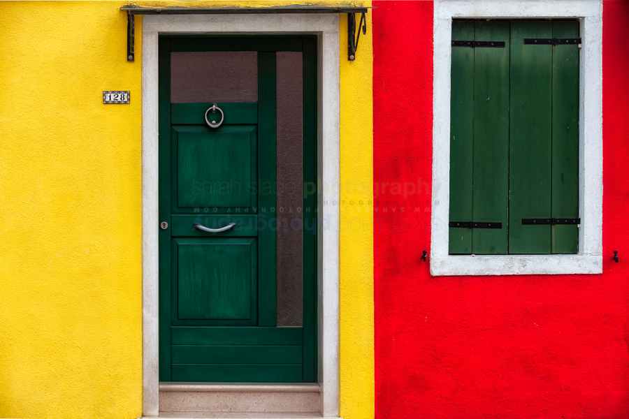 PT2012_08_Venice-64 Description: Burano: house detail close up with brightly painted yellow wall, red wall with green wooden door and window shutters, Venice, Italy Keywords: Burano, Format, Italia, Italian, Italy, Veneto, Venezia, Venice, city, close up, closeup, colour, colourful, country, detail, door, europe, facade, fishing village, front, green, horizontal, house, landmark, landscape mode, lines, painted, pattern, red, shutters, tourism, view, wall, window, wooden, yellow Dimensions: 5616 x 3744 Camera: Canon EOS 5D Mark II Exposure: 1/25 sec at f / 6,3 Focal Length: 115 mm ISO: ISO 250 Copyright: © PHOTOempt 2012